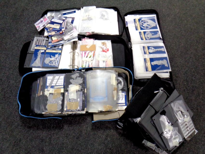 Five wallets containing a large quantity of lace, dies