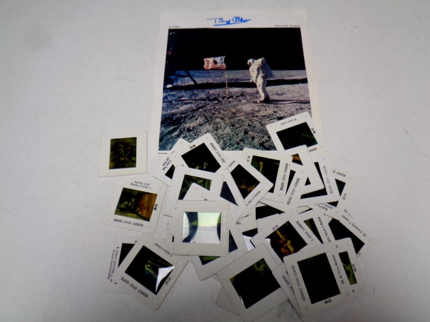 Official Nasa photograph of astronaut Buzz Aldrin (2nd man on the Moon), signed by Buzz Aldrin along with over 35 original vintage 35mm negatives of the Space shuttles etc housed at Kennedy Space Center in Florida.