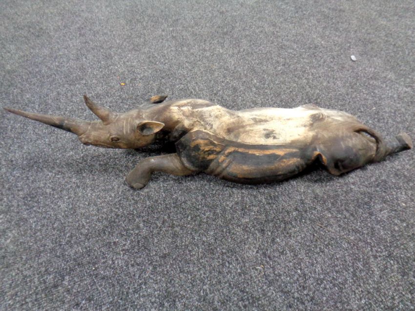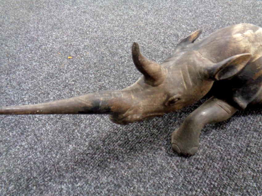 A carved African hardwood figure of a rhinoceros