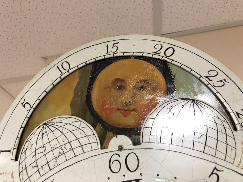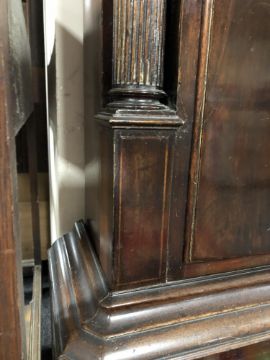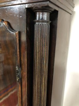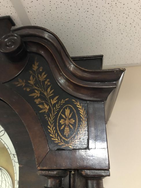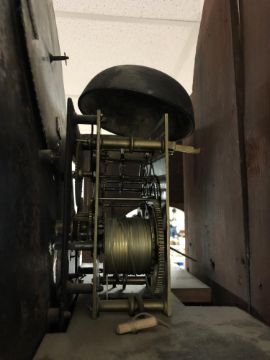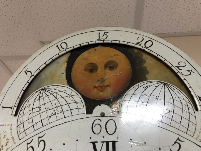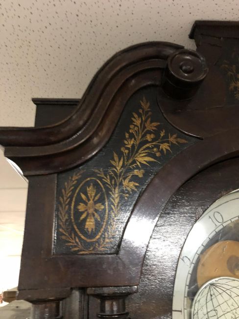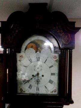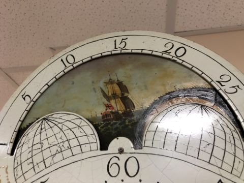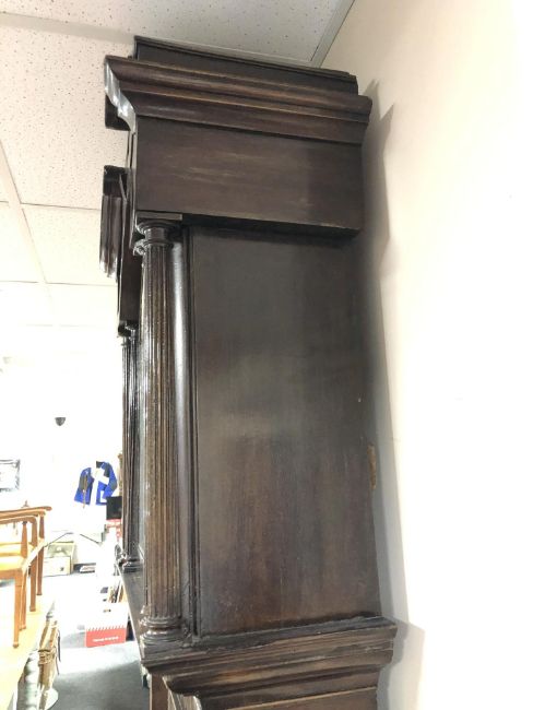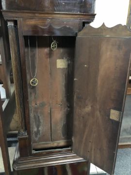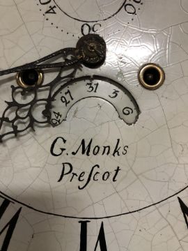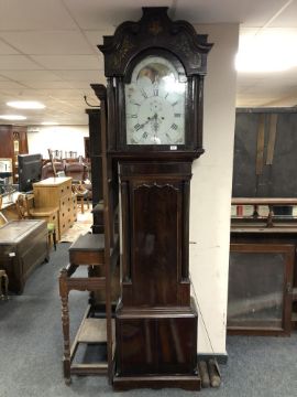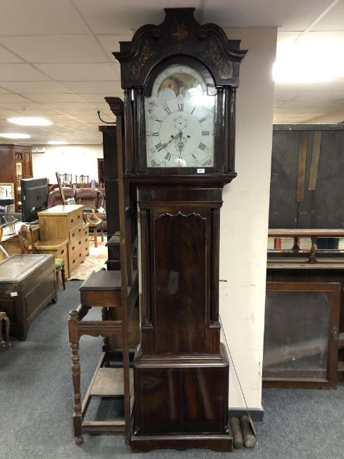 A George III mahogany eight day longcase clock with painted moon phase dial signed George Monks, Prescot