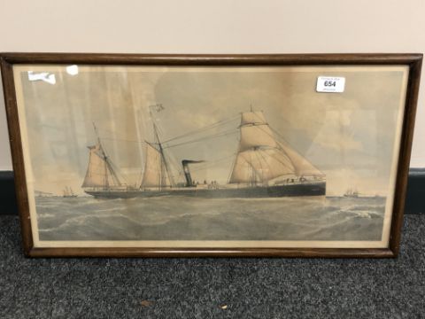 After W T Baldwin : A three masted naval ship, printed by J G Campbell and Co Sunderland, 55 x 28 cm