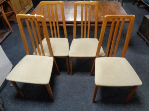 A 20th century teak G-plan dining table, length 153 cm with four Morris of Glasgow rail back chairs