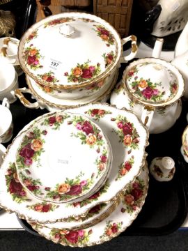 A tray containing approximately 43 pieces of Royal Albert Old Country Roses tea china together with a boxed set of six Royal Albert table mats