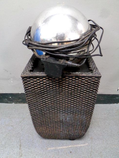 A contemporary ball electric garden water feature
