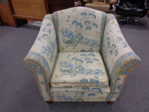 An armchair upholstered in an oriental pattern fabric