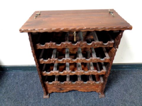 A rustic pine five section wine rack