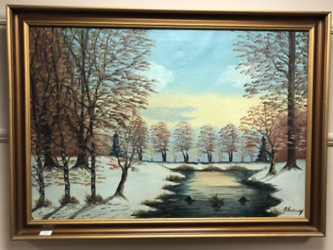 Continental school : A tree lined landscape, oil on canvas, 96 x 65 cm