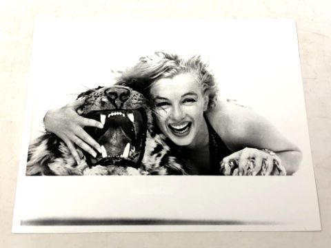 Photographer Richard Avedon (1923-2004) photo of Marilyn Monroe with a toy tiger in 1957. Copyright stamped by Richard Avedon on verso.