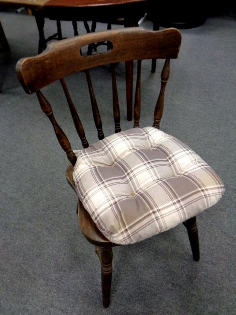A circular 20th century extending kitchen table with two leaves together with a set of four stick back chairs