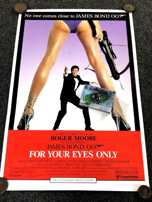James Bond - For your eyes only official movie poster, with 1/36 scale Jaguar XXR - Die another day model car TY07601 in original box, unplayed with.