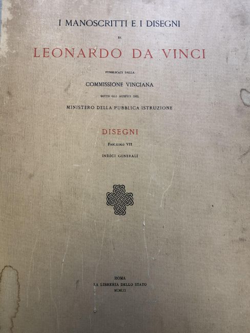 La Libreria Dello Stato (Publisher) : Mauuscripts and Drawings by Leonardo Da Vinci, a folio, "Pubblicati Dalla Comissione Vinciana Sotto Gli Auspici Del Ministero Della Publica Istruzione Disegni Fascicolo VII Indici Generali, containing numerous colour and monochrome illustrations along with the accompanying text.