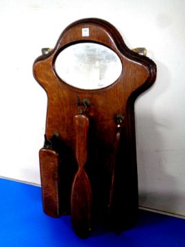 A three piece 20th century oak brush set on board