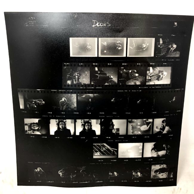 Photographer David Sygall, vintage contact sheet print of Jim Morrison and The Doors at their Fillmore East performances in 1968 and behind the scenes. With David Sygall copyright stamp on verso.
