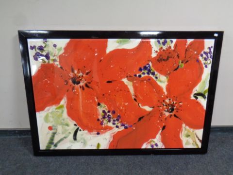 A contemporary oil on canvas, poppies, in a black lacquered frame
