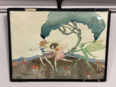 Elizabeth Mary Watt (Scottish, 1886-1954), Fairies prancing, watercolour, 24cm by 18cm, signed lower left, inscription verso.