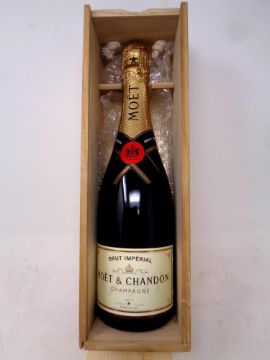 A bottle of Moet & Chandon champagne in fitted wooden box