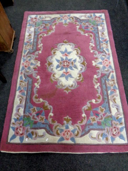 A Chinese floral patterned rug on pink ground