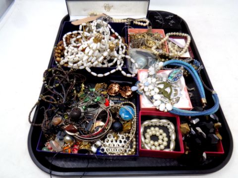 A tray of a large quantity of costume jewellery to include necklaces, brooches, Murano glass pendant etc
