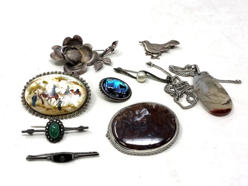 Silver jewellery including brooch set with small diamond
