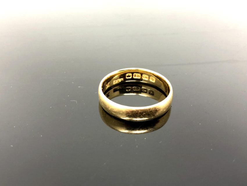 An 18ct yellow gold wedding band, size P, 4.3g.
