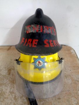 A Royal Air Force fireman's helmet together with a further vintage fireman's helmet