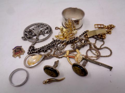A small quantity of costume jewellery, napkin ring, identity bracelet etc