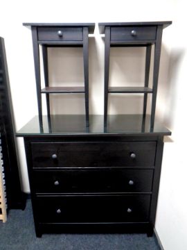 An Ikea Hemnes three drawer chest together with pair of matching bedside stands fitted a drawer
