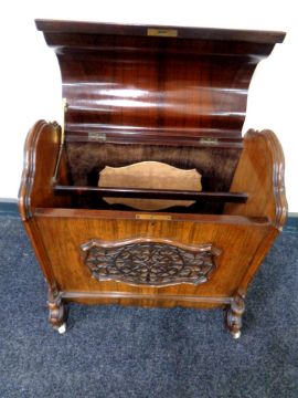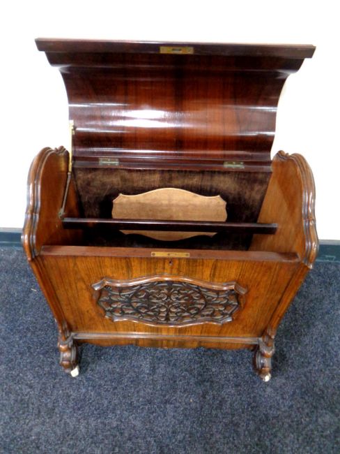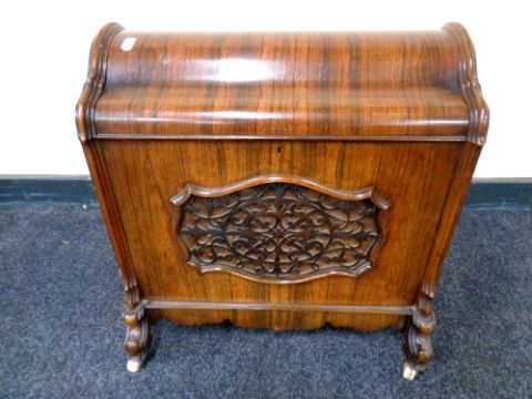 An early Victorian rosewood dome topped music cabinet, fitted divider within, raised on ceramic castors, height 53 cm