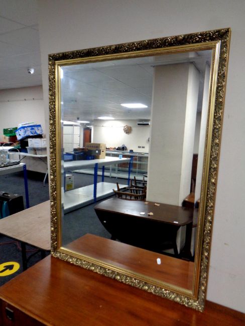 A gilt framed bevel edged overmantel mirror, glass 75 cm x 100 cm