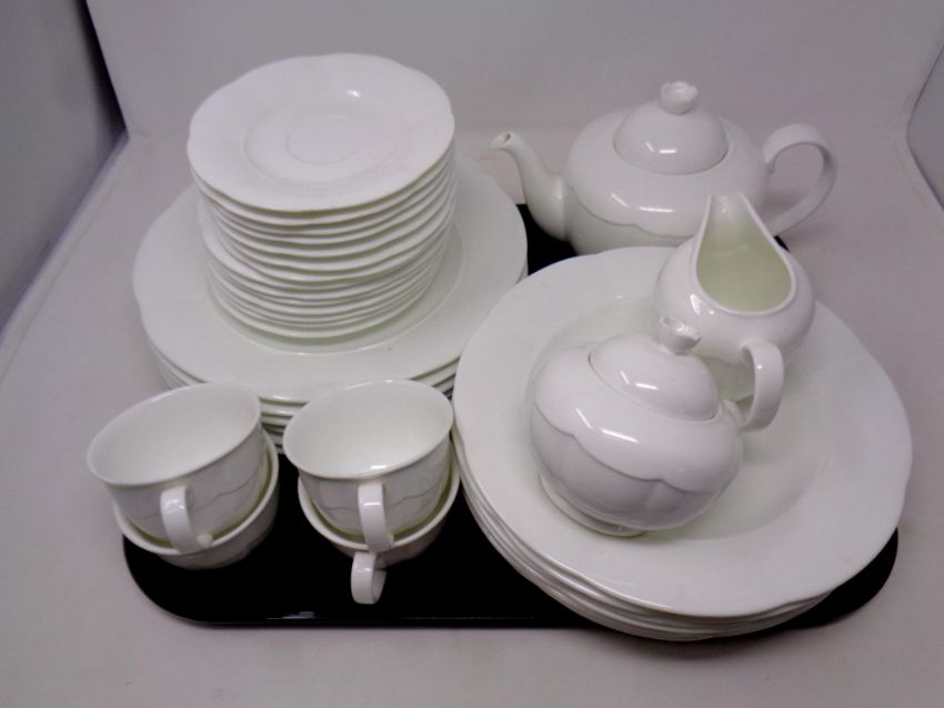 A tray containing 34 pieces of Villeroy and Boch bone china, tea and dinnerware