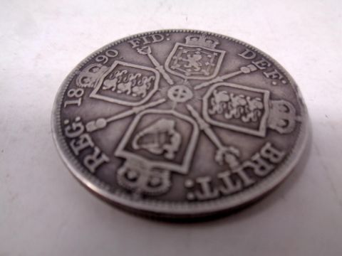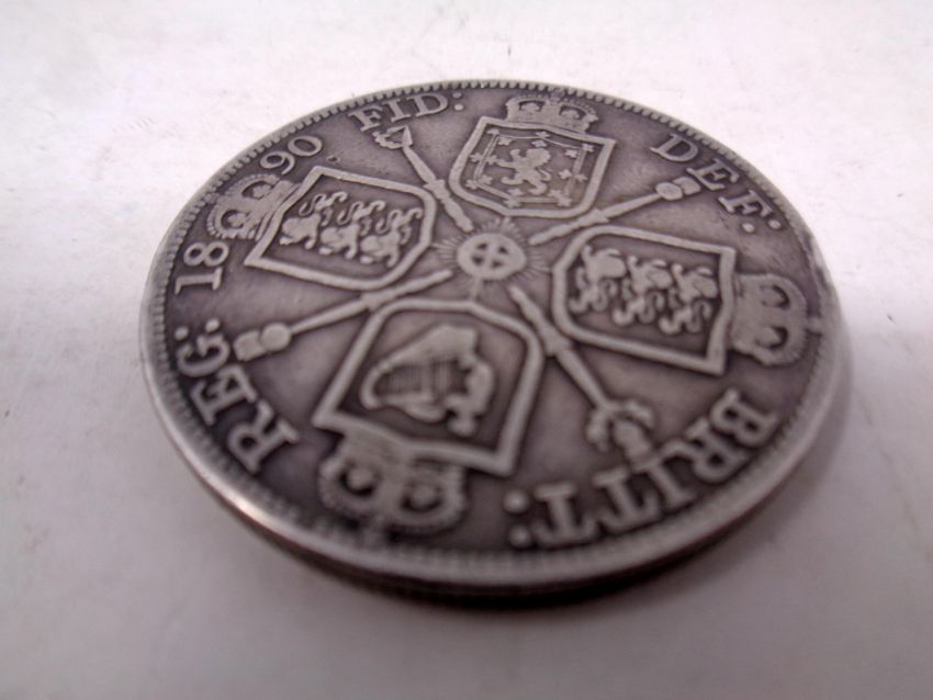 A Victorian silver double Florin dated 1890.