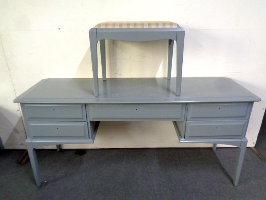 A Stag Minstrel five drawer dressing table with stool, painted, no handles or mirror