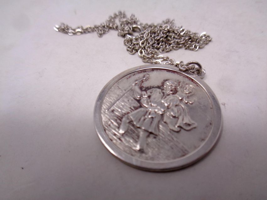 A sterling silver St Christopher pendant on chain
