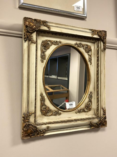 A contemporary cream and gilt mirror, overall 39cm by 34cm.