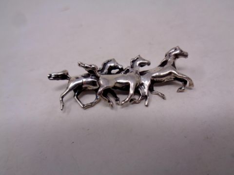 A silver brooch modelled as three horses