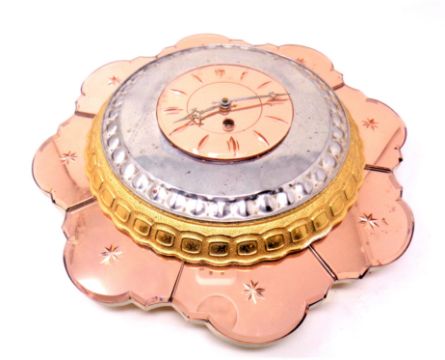 An Art Deco two tone glass wall clock in the form of a flower petal