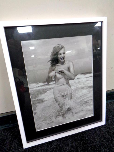 Photographer: Andre De Dienes (1913-1985). Marilyn Monroe at Tobay beach, Long Island, New York in the summer of 1949. Andre De Dienes credit on verso, mounted and framed. From the collection of Kim Goodwin.