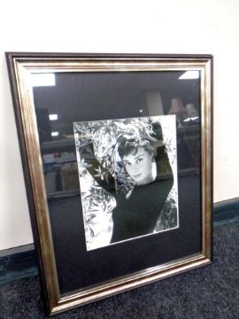 Photographer: Philippe Halsman (1906-1979). Close up portrait photo of Audrey Hepburn in Rome, Italy 18th July 1955. Philippe Halsman credit on verso with auction house 'Bukowskis' of Sweden price tag attached to board. Mounted and framed.