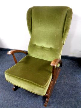 A mid 20th century rocking chair upholstered in a green dralon