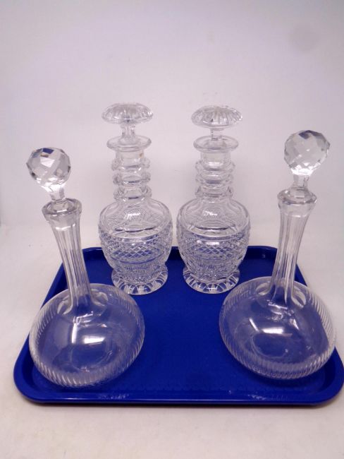 A pair of lead crystal cut glass decanters together with a further pair of liqueur decanters