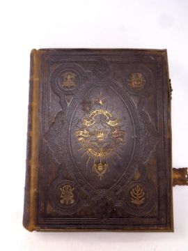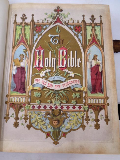 A 19th century leather bound Browns self interpreting family bible with colour lithographic book plates