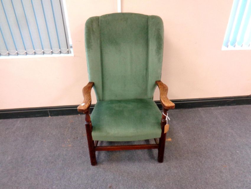 An Edwardian oak framed armchair