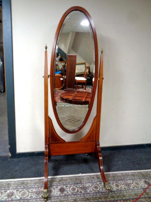 A good quality late 19th century inlaid mahogany cheval mirror, width 68 cm, height 191 cm