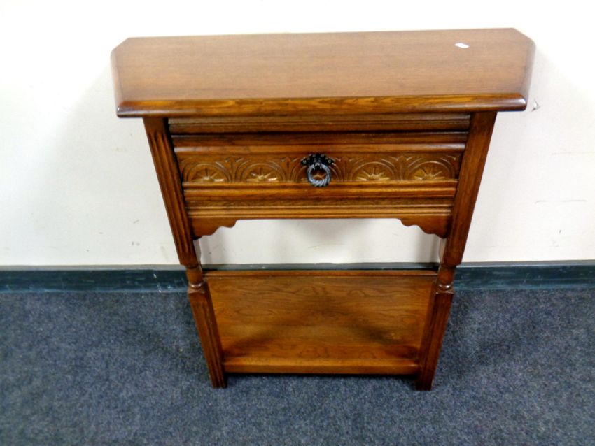 A contemporary oak hall table fitted a drawer, width 80 cm