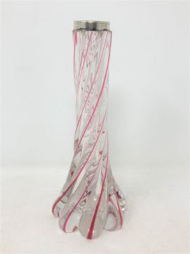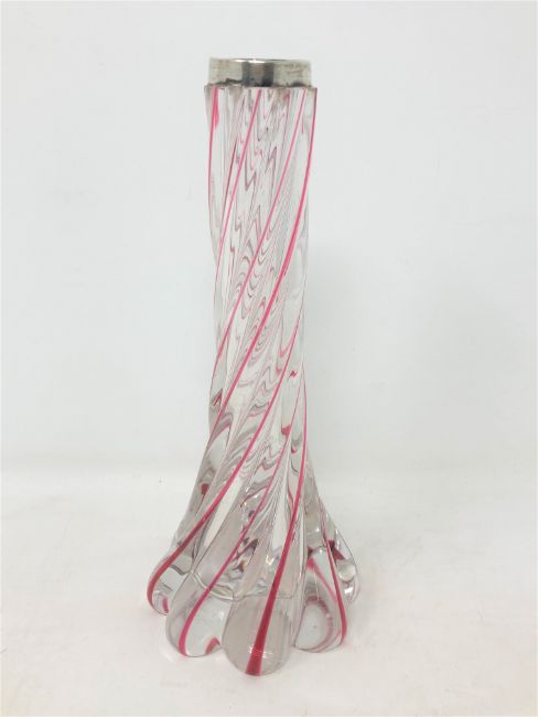 An Edward Stuart & Sons glass vase, with silver rim and writhen red trailing, hallmarked Robert Pringle, London 1905