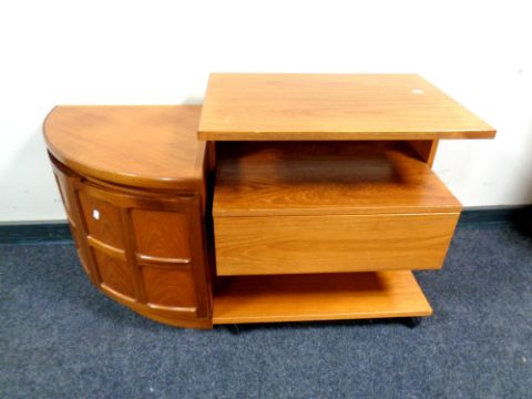A Nathan teak corner low cabinet together with a teak trolley fitted with a drawer