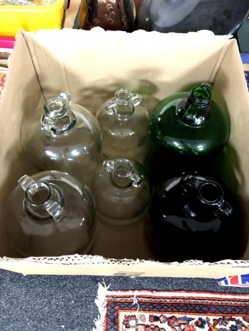 Six glass demijohns