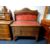 A good quality late 19th century Art Nouveau style oak four piece bedroom suite comprising of triple door wardrobe, mirrored dressing table, tiled wash stand and 4ft 6' bedstead