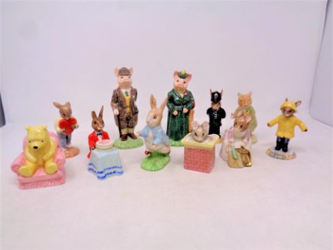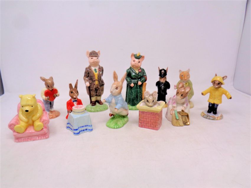 Eleven figures by Royal Doulton and Beswick to include Beatrix Potter figures, The Lady Pig, The Gentleman Pig etc