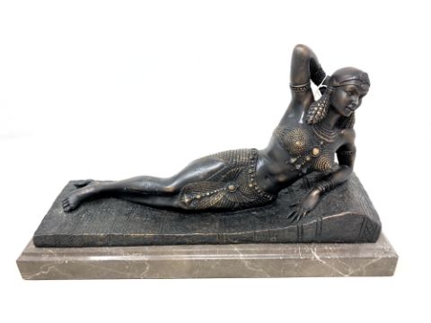 A contemporary bronze figure of an Egyptian style lady on marble plinth